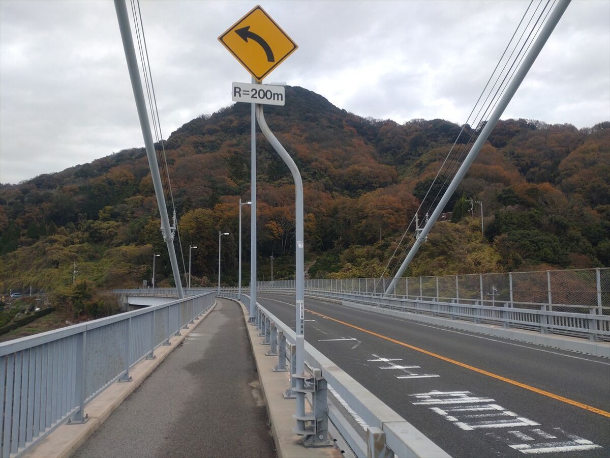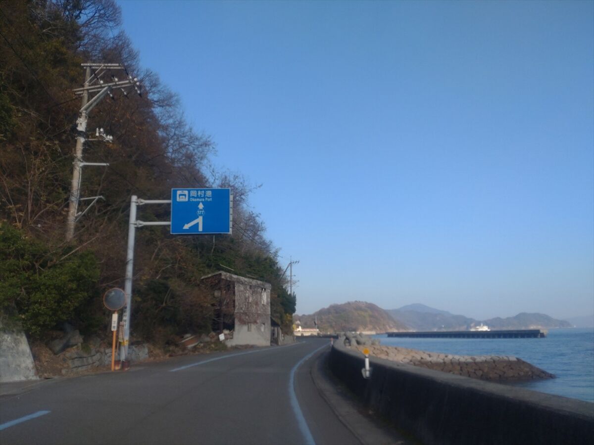 先ほどはここを直進しましたが、左折して岡村島方面に進みます。