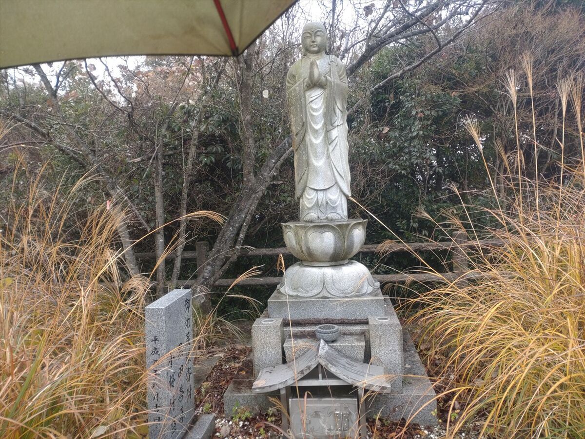 側にはお地蔵さんです。傘の端が写っていました(^^;
