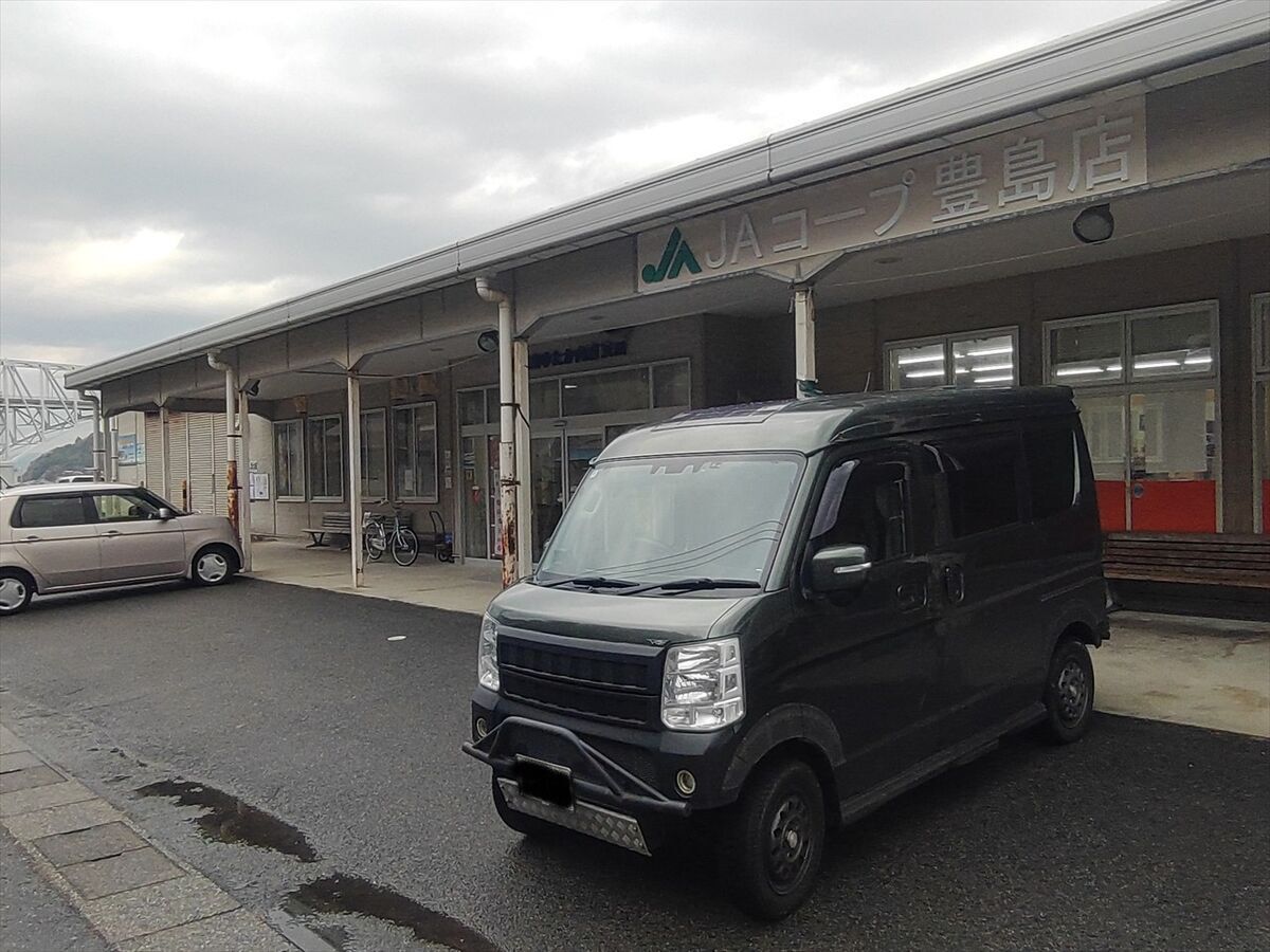 今日はとびしま海道添いのジオキャッシングが明日に持ち越すことも想定して買い物をしておきます。JAコープ 豊島店を見つけたので行ってみましょう。