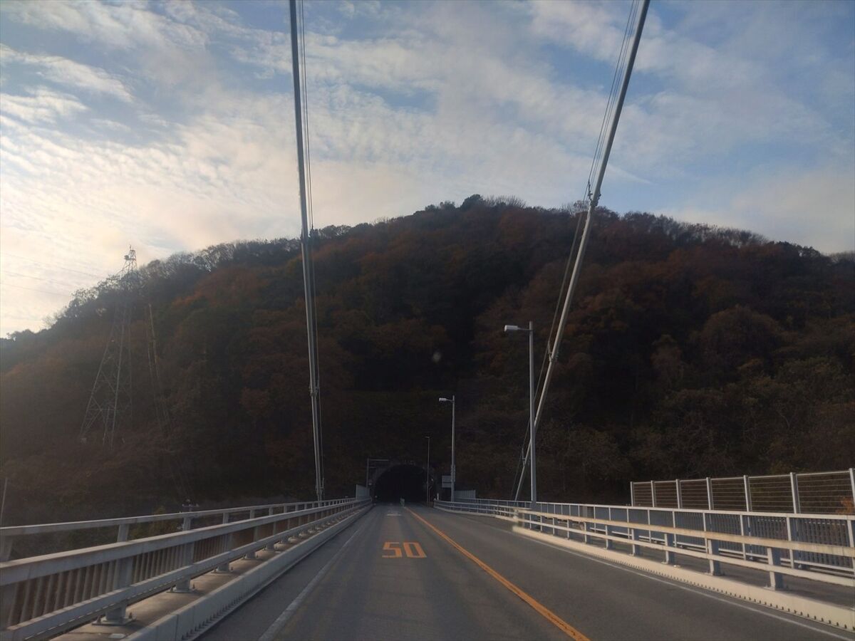 動画を写しながらむろはら橋を下りて行きました。ナビが途中で変な音声案内をします(^^;