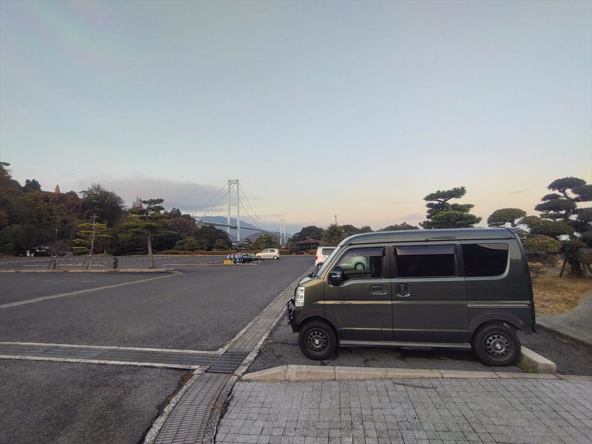 今日は下蒲刈島の見戸代緑地を利用させていただきます。見戸代緑地は以前とびしま海道サイクリングをする時に車を置いてスタートし戻ってきて仮眠した場所です。白崎園より道路から離れているので静かです(^^)