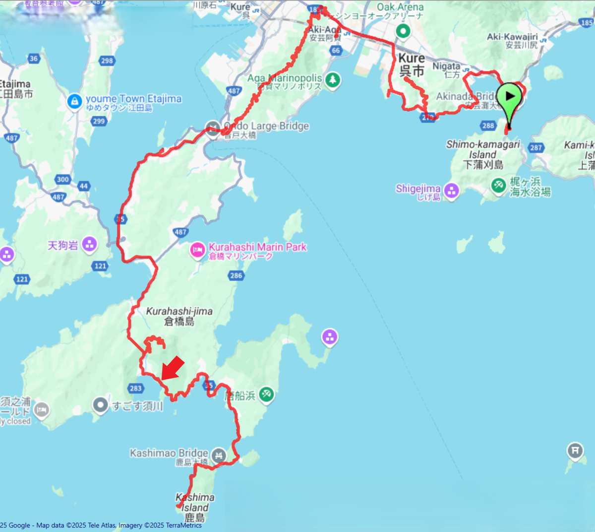 今日は安芸灘大橋を渡りとびしま海道から出て仁方から倉橋島辺りのジオキャッシングをします。