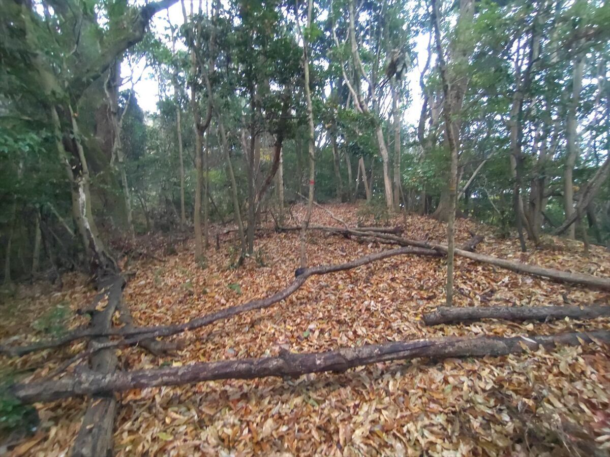 何とか砲台跡に到着です。向こうにはオレンジのウエアを来た人たちが集まっていて、猟犬に追わせたイノシシか何かをGPSで位置確認されているようで、イノシシ狩りかもしれません。