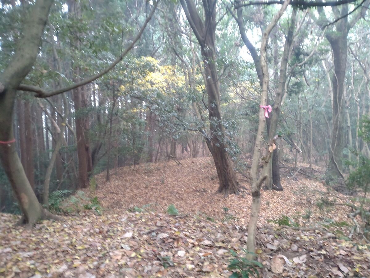 はっきりとした遊歩道は無くピンクテープの印とスマホのジオキャッシュのある方向を見ながら奥へ歩いて行きます。