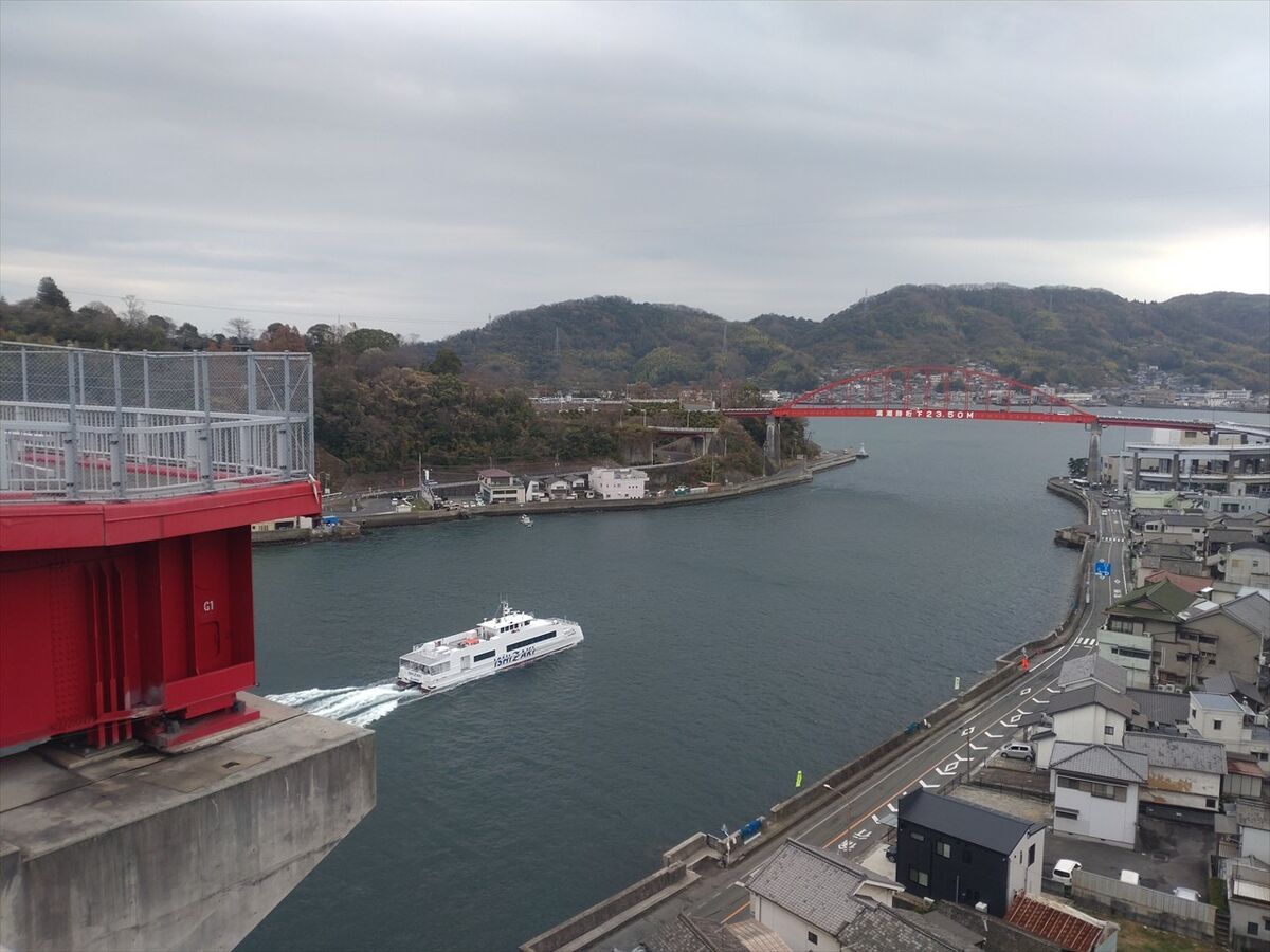 今度は貨物船?が下を通って行きます。狭い音戸の瀬戸に往来が多いですね。