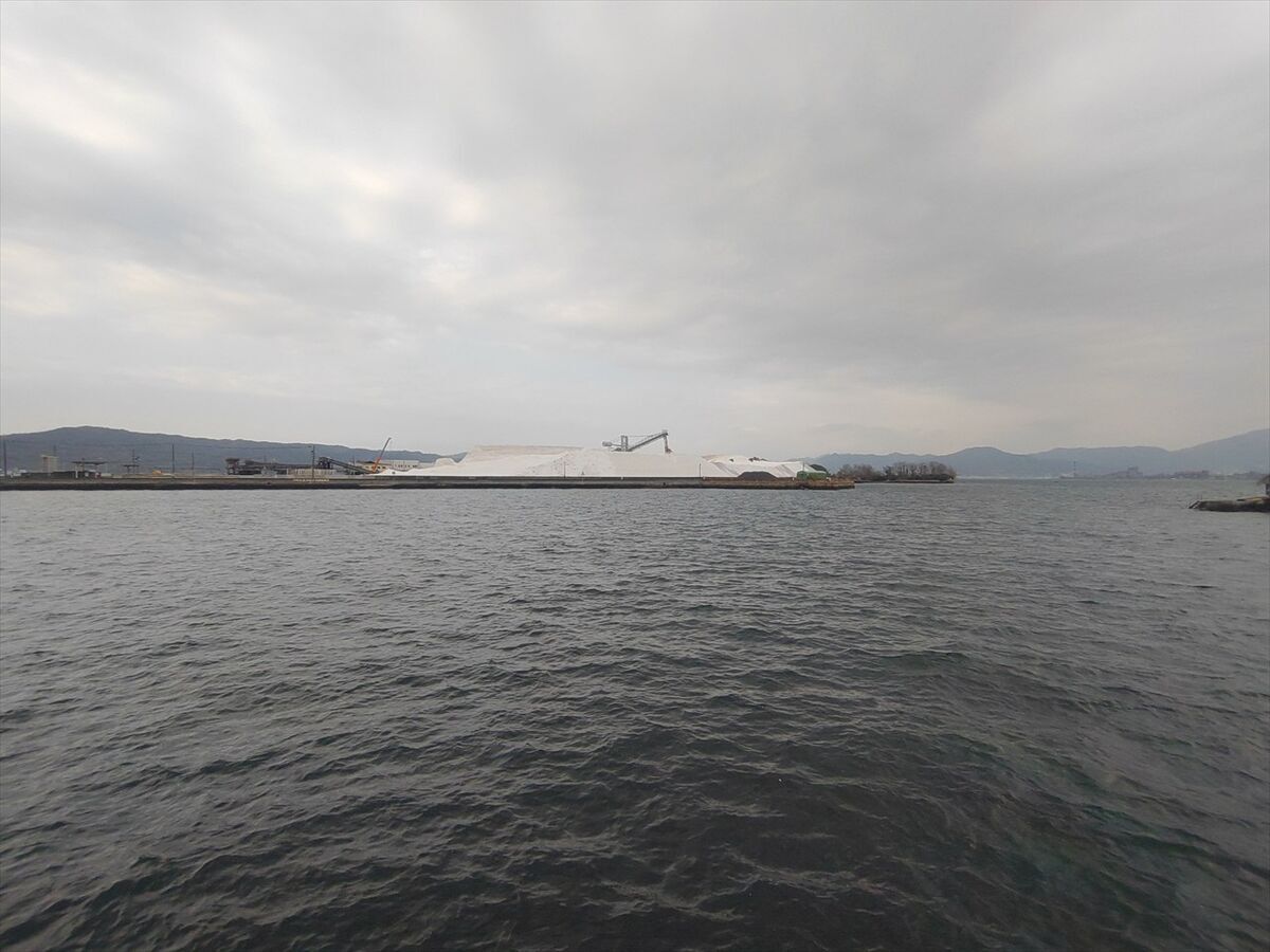 三ツ子島の塩の山が近くに見える音戸町波子へ行きましょう。駐車場を出発します。