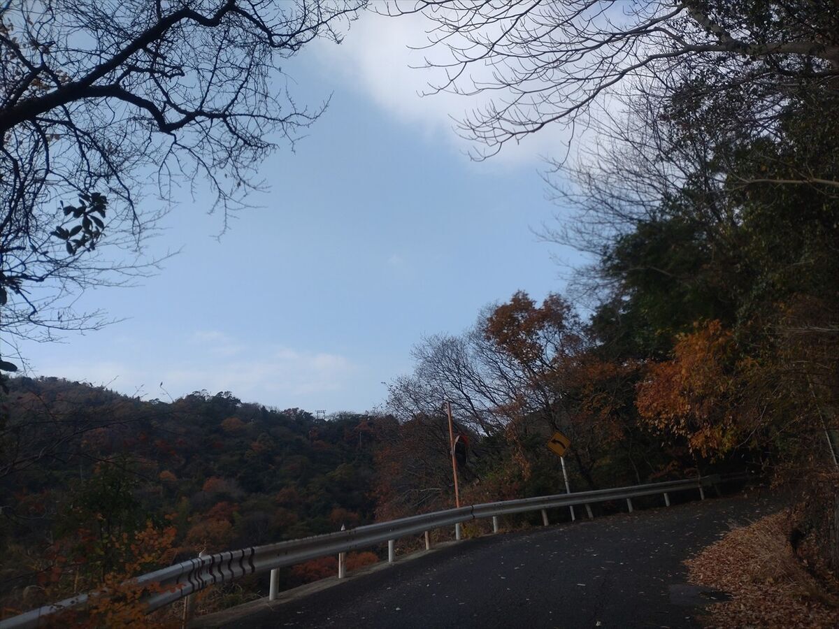 落ち葉が多くてタイヤが滑らないか心配でしたが大丈夫でどんどん上がって行きます。