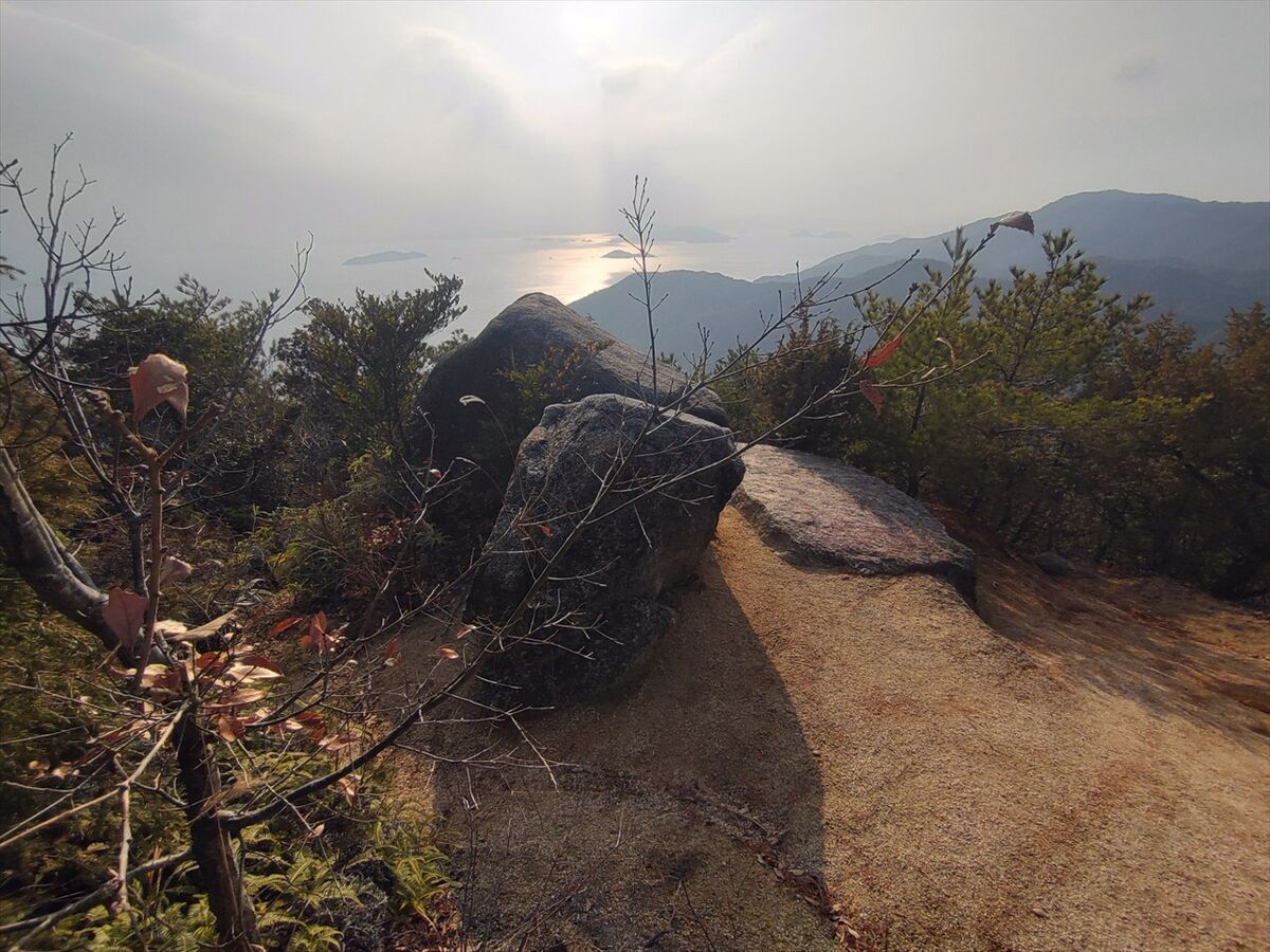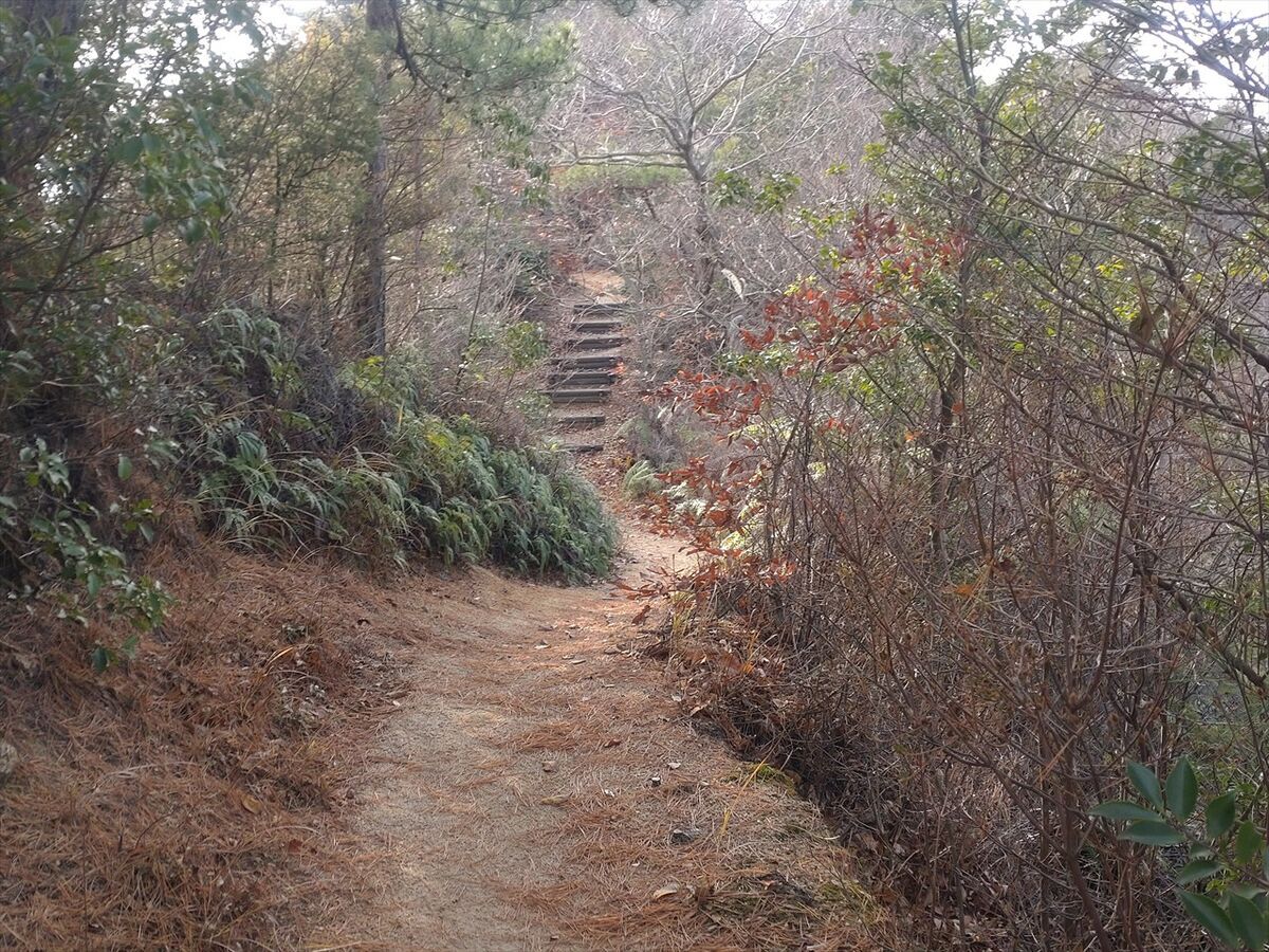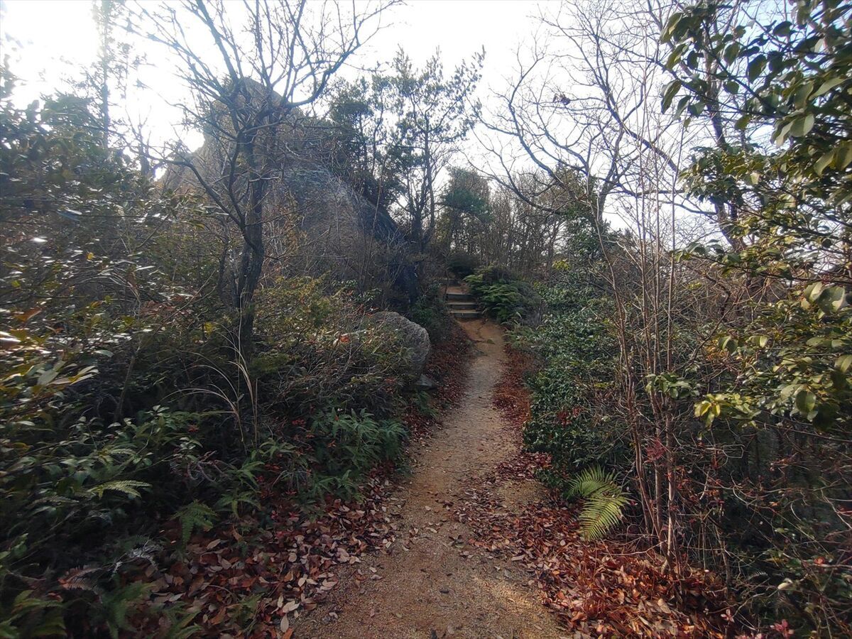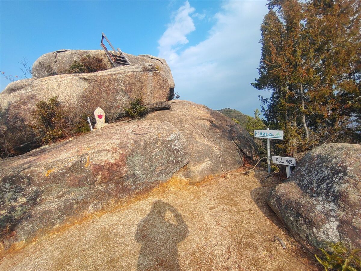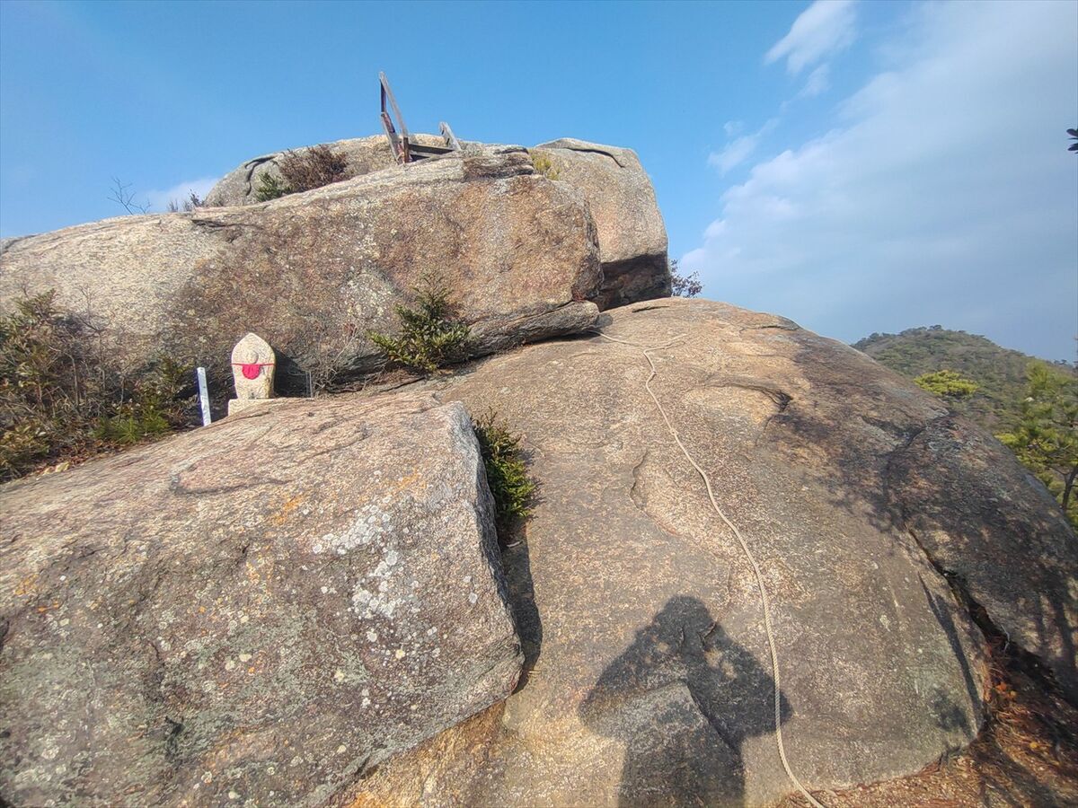 ここが山頂の展望岩への入口です。階段を上がって15分か(^^;
