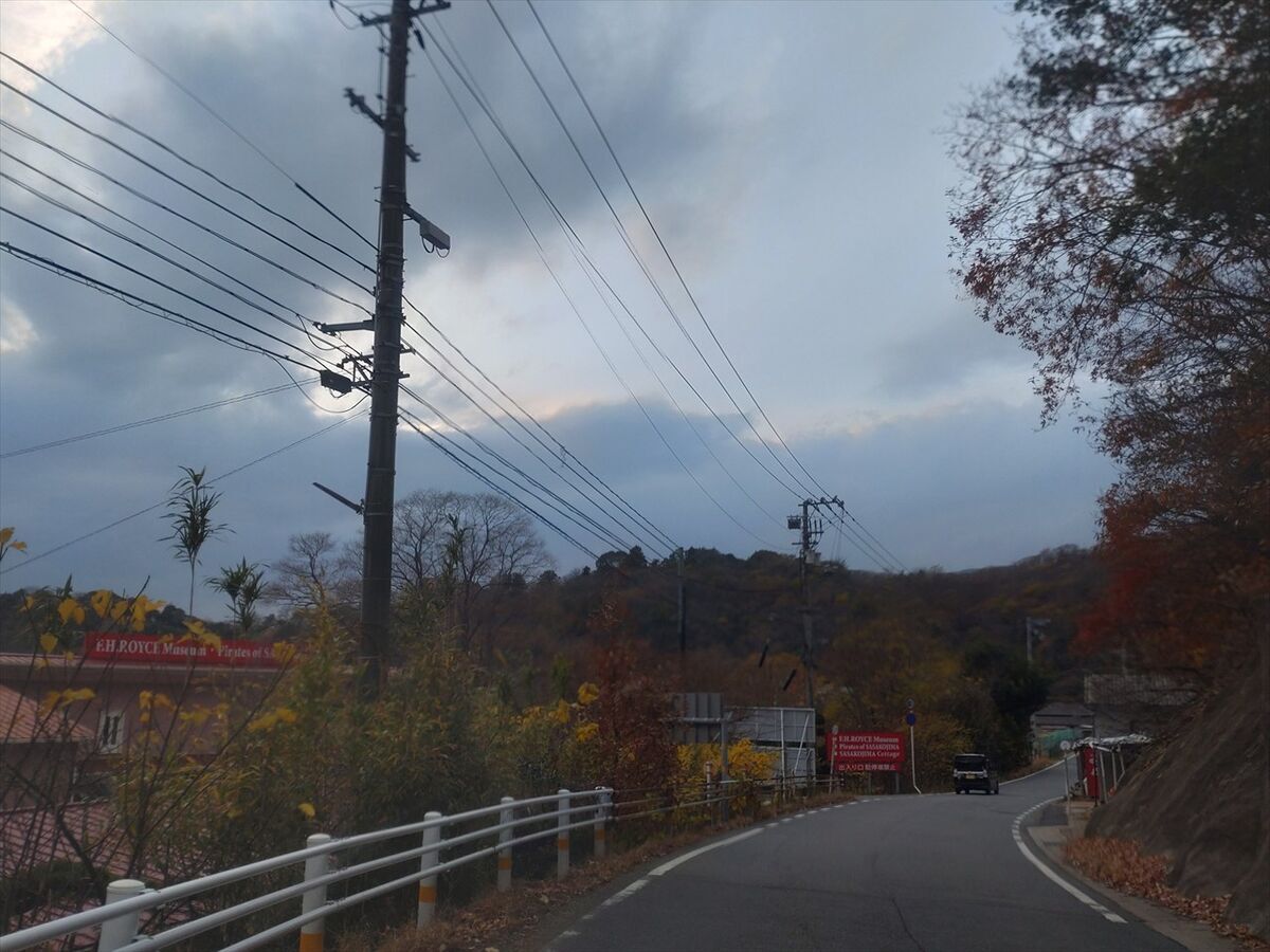 次は休山展望台へ行きましょう。入口まで戻ってきました。ここを左折します。