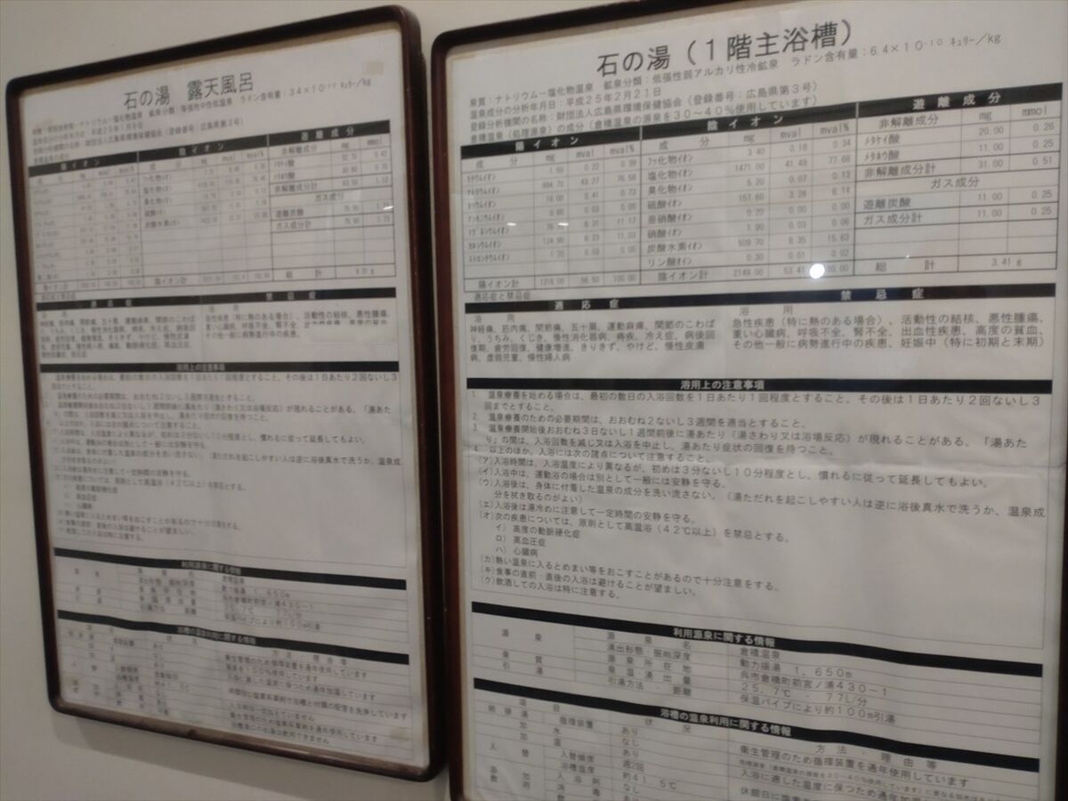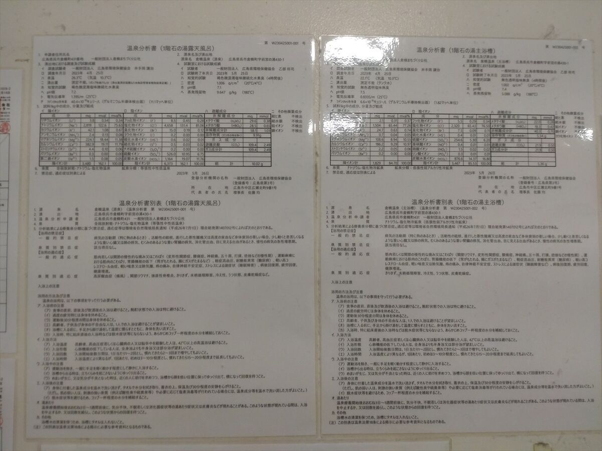 温泉分析表です。露天風呂と内湯の2種類があります。
