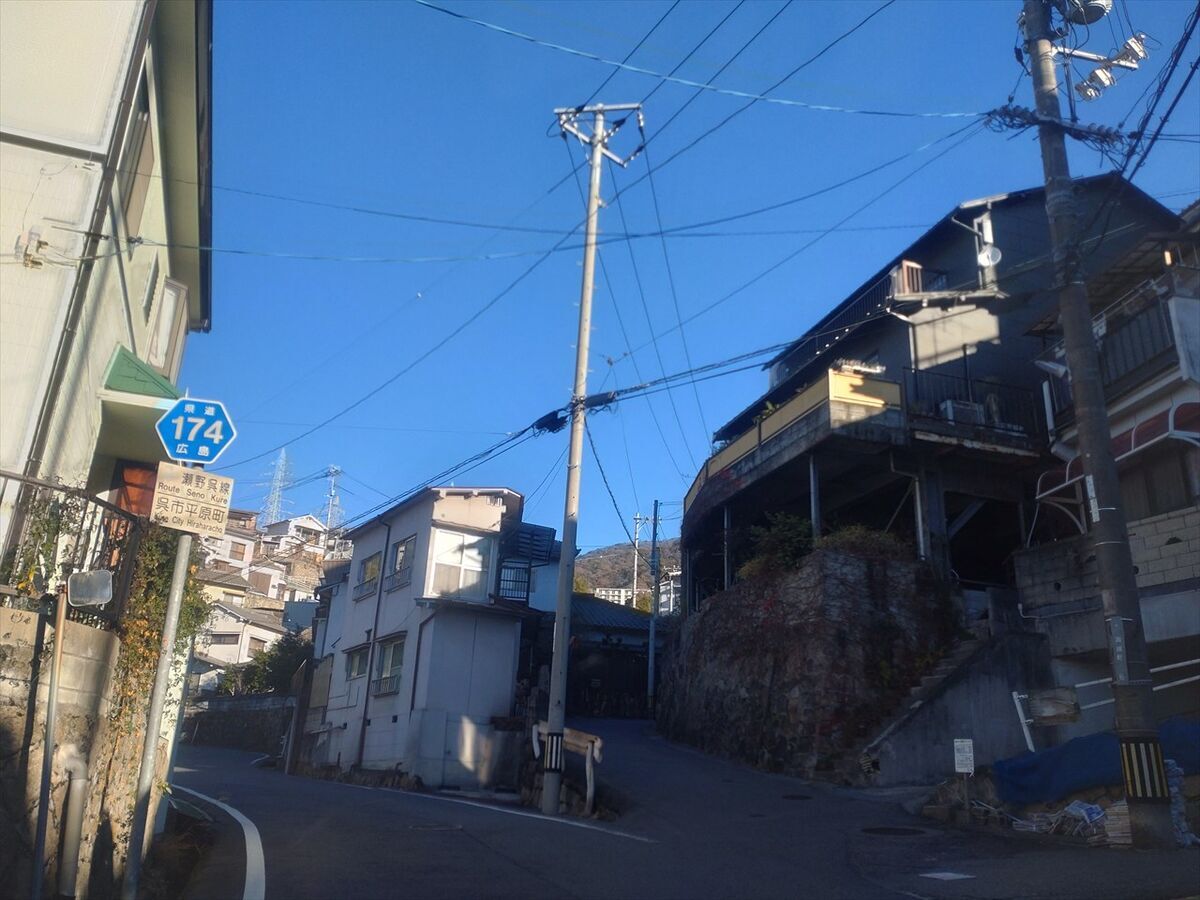 住宅の間の急な坂を上がっていきます。呉は平地が少なく山の斜面に家が多いですね。