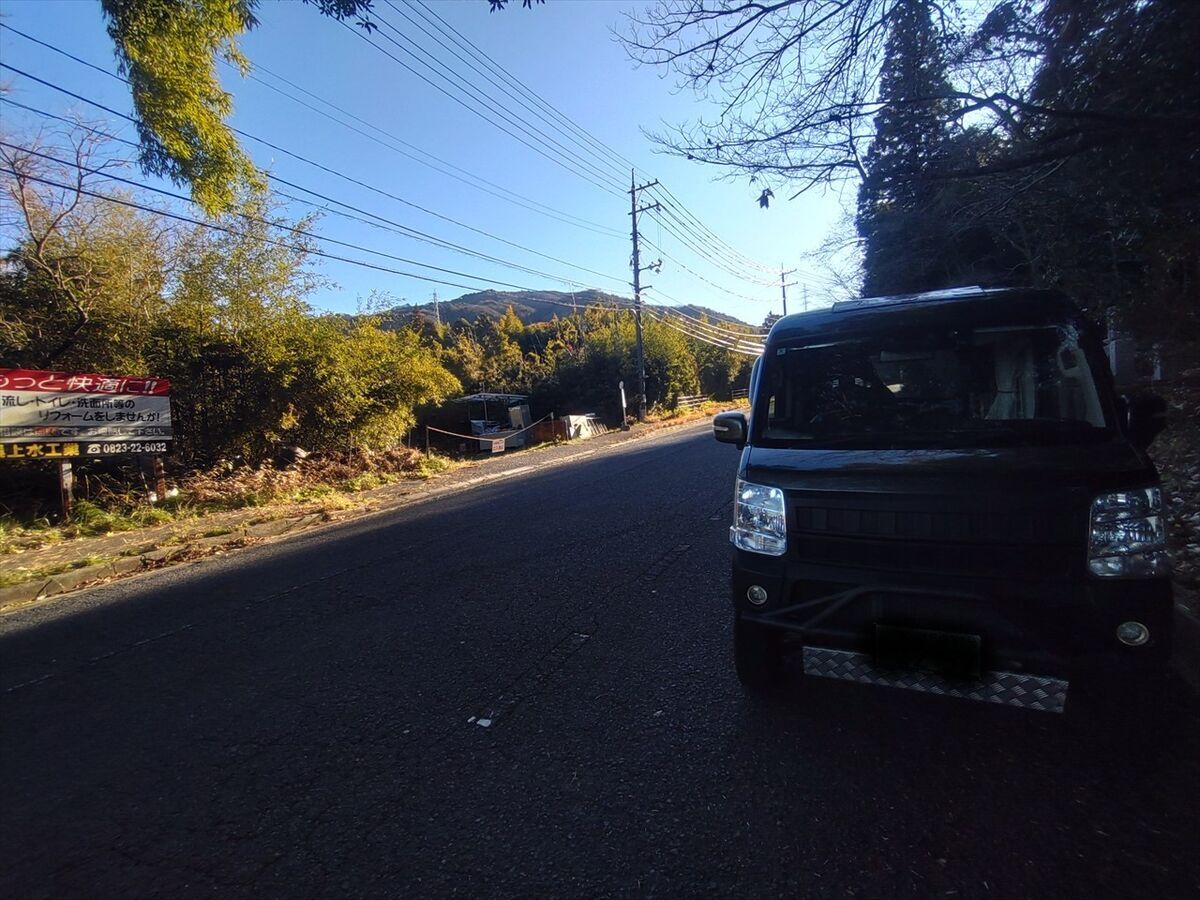 神山峠の辺りの広い所に車を停めて歩いて行きましょう。