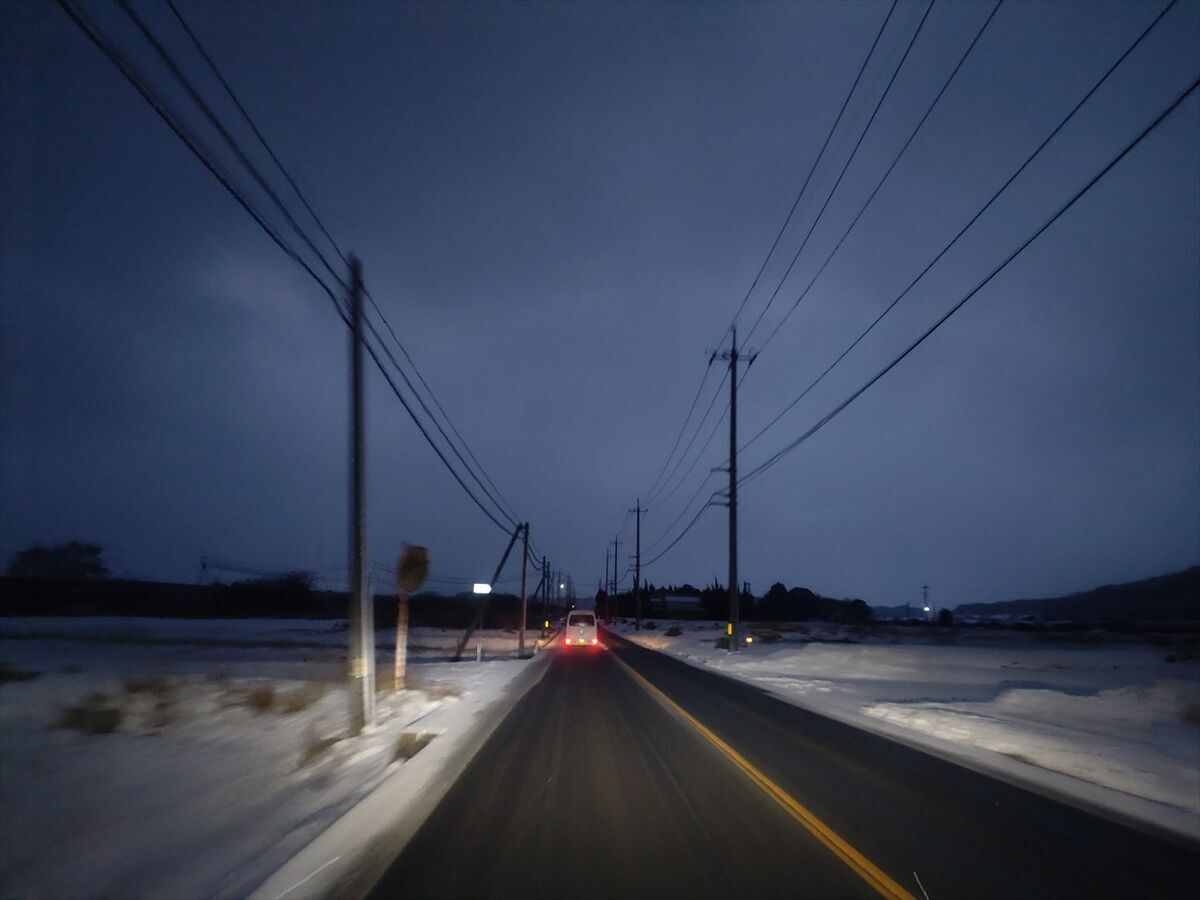 まだ外は真っ暗ですね。積雪も無く昨晩の強風も止んでいました(^^)