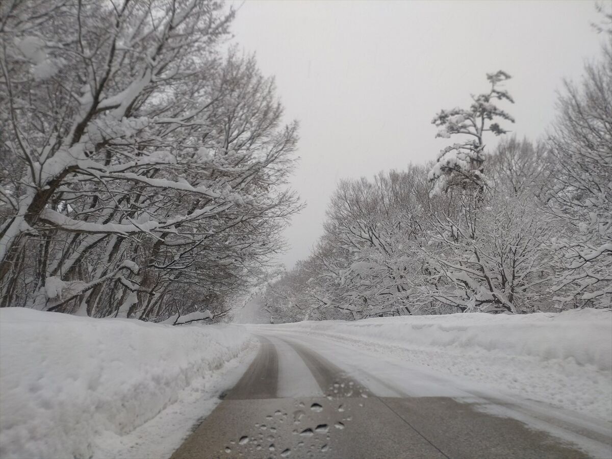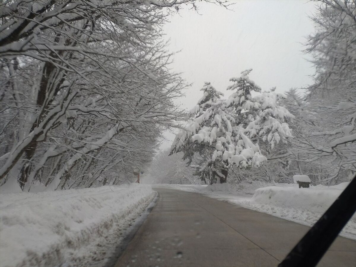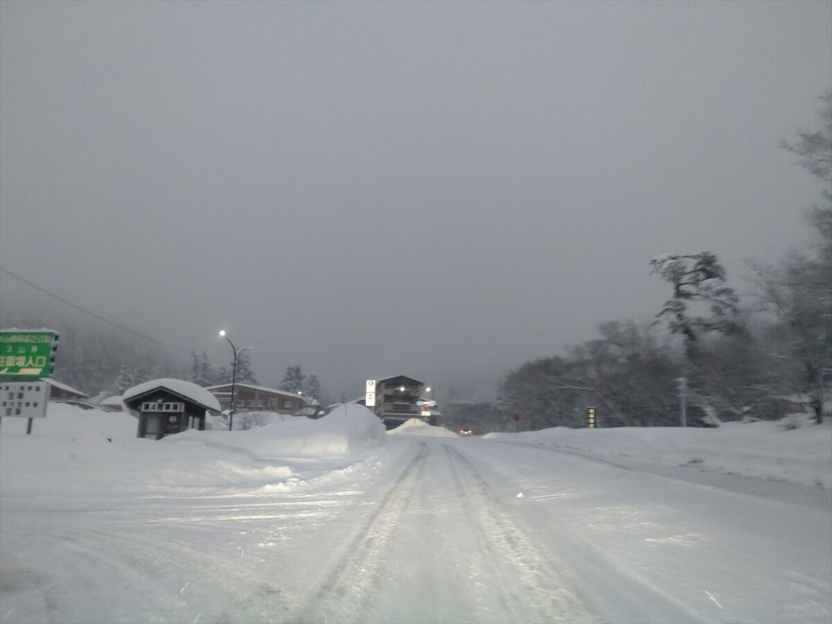 明日はこの道を左へ進んだ所にあるスキー場に行くつもりです。