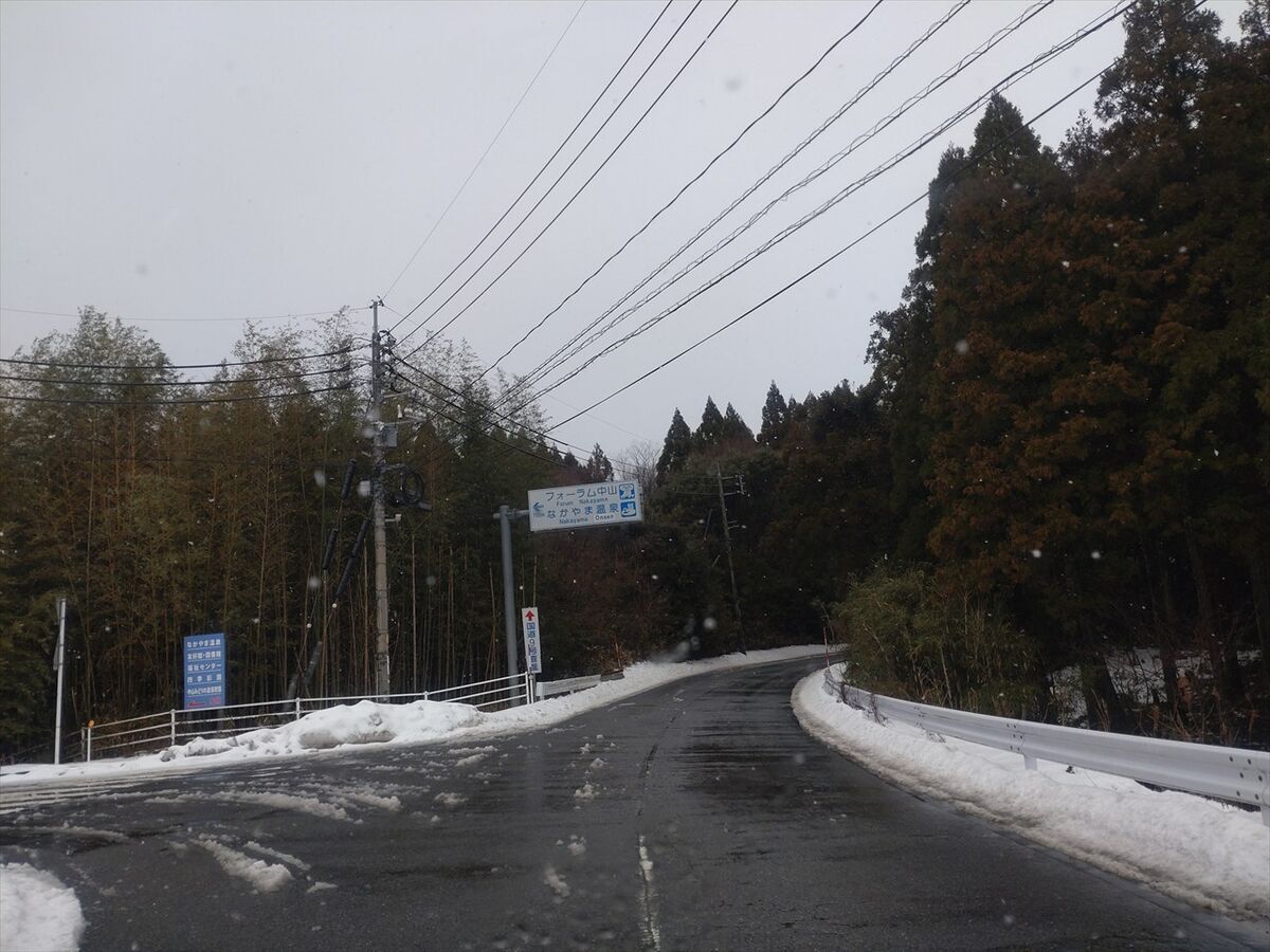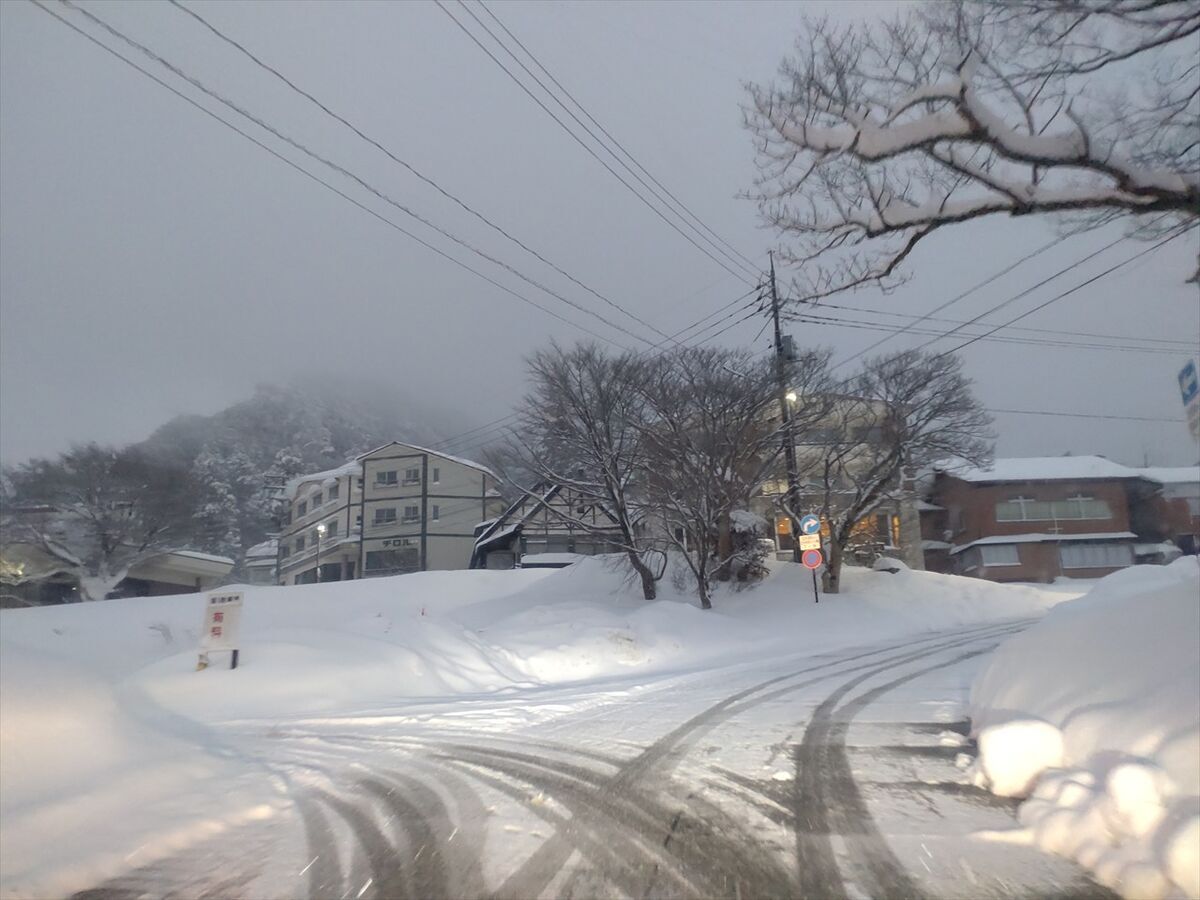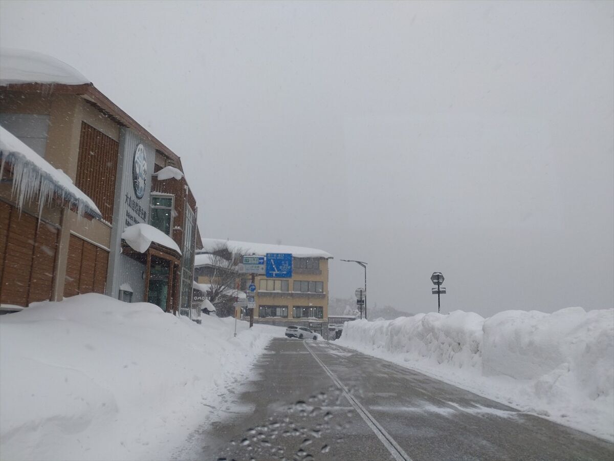 駐車場前の道は一方通行になっていて融雪装置があるようです。