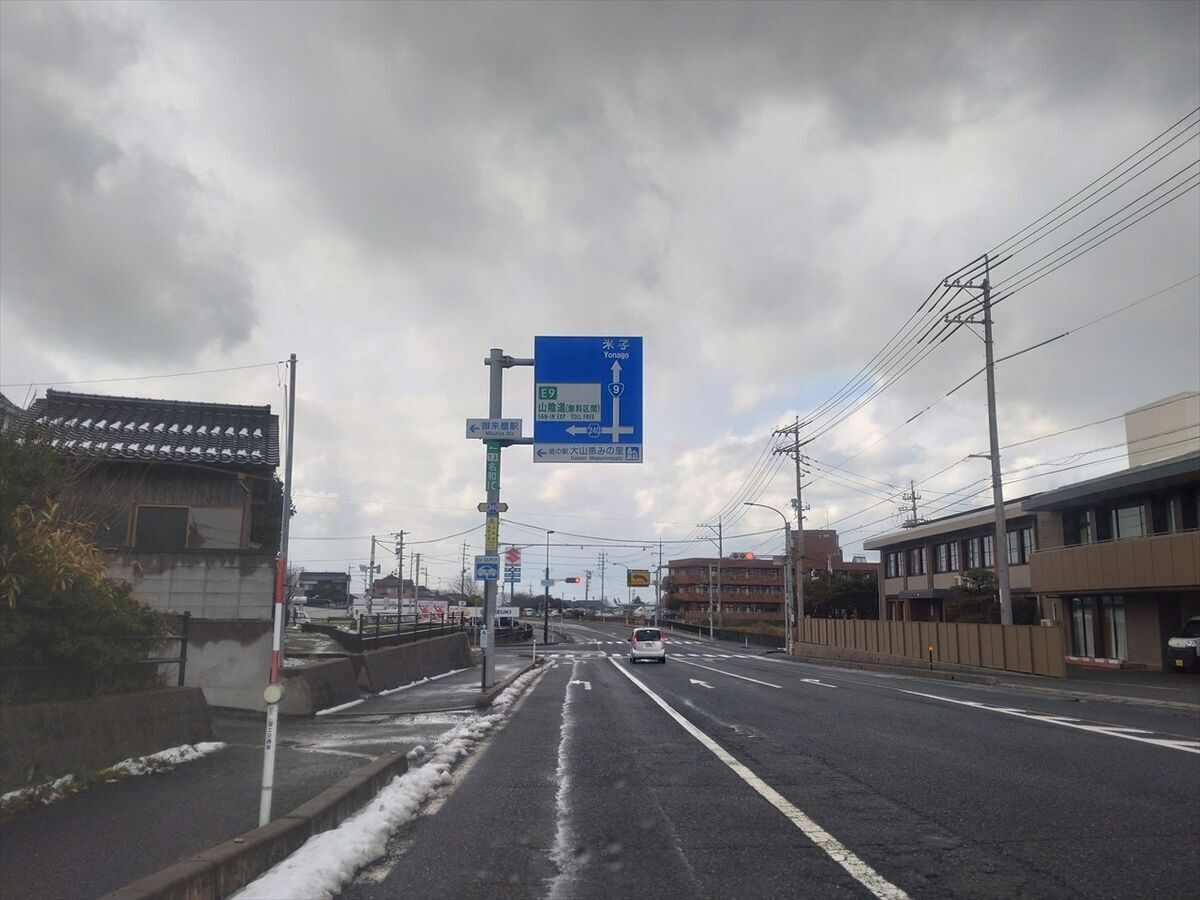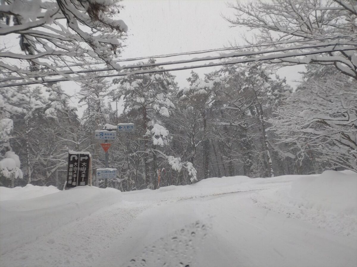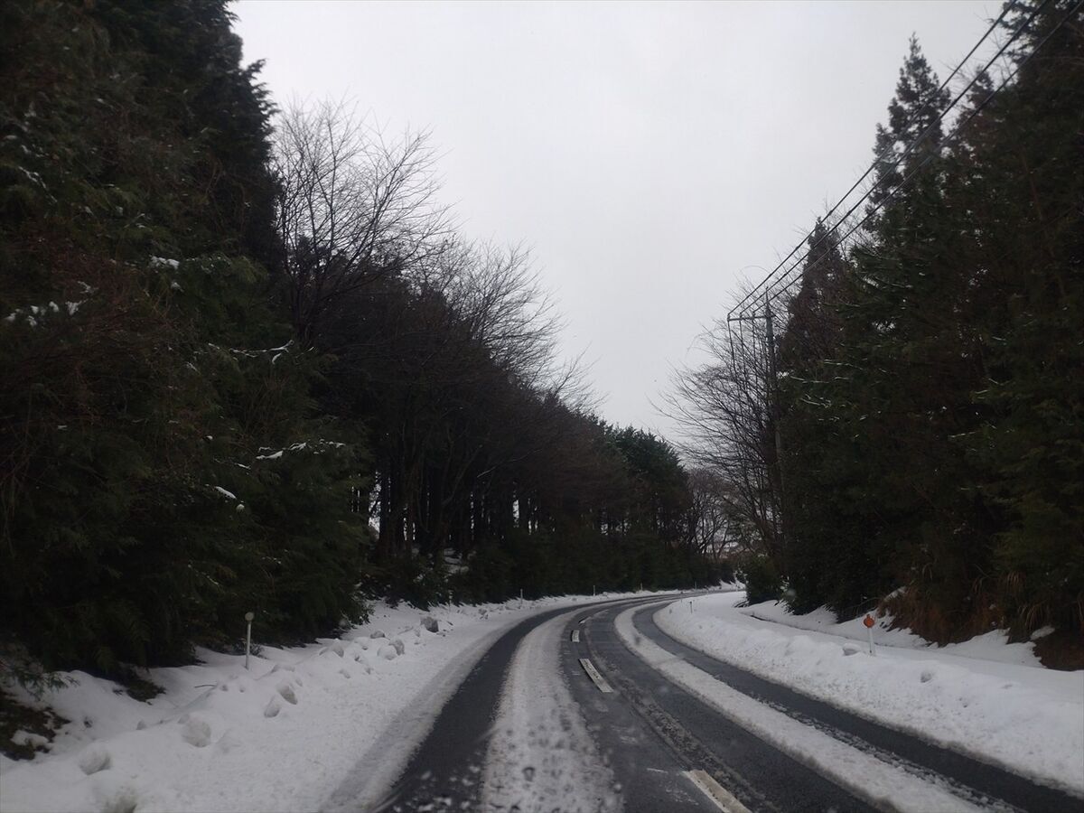 道路が真っ白になってきました。県道158号線を大山寺まで上がって行きます。