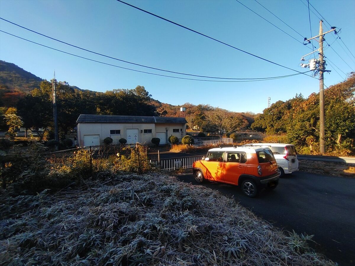 ほどなく到着です。霜が降りて真っ白です。