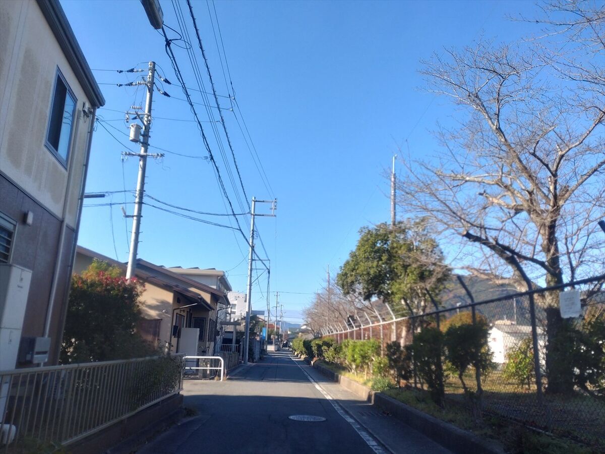 道路の右が陸上自衛隊 山口駐屯地です。道路の左が公園の角あたりで、この写真の範囲にジオキャッシュが隠されているようですがいくら探しても発見出来ませんでした(^^;