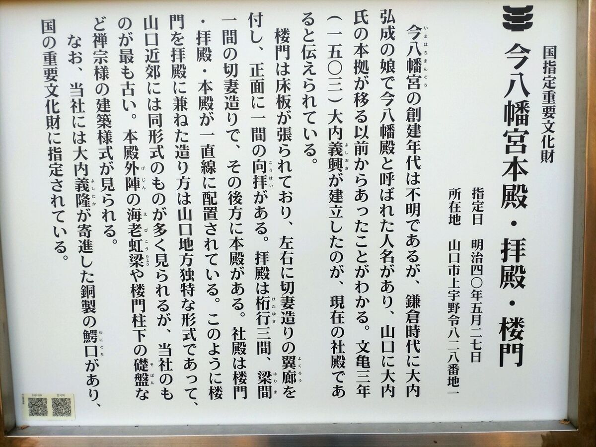 今八幡宮の駐車場に到着です。見学しましょう。