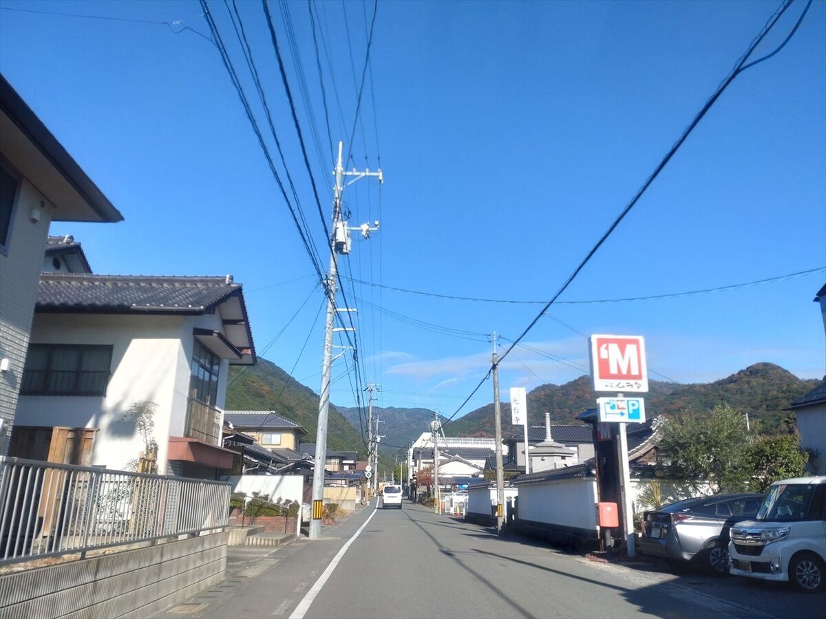 狭い道を進むとまもなく駐車場です。