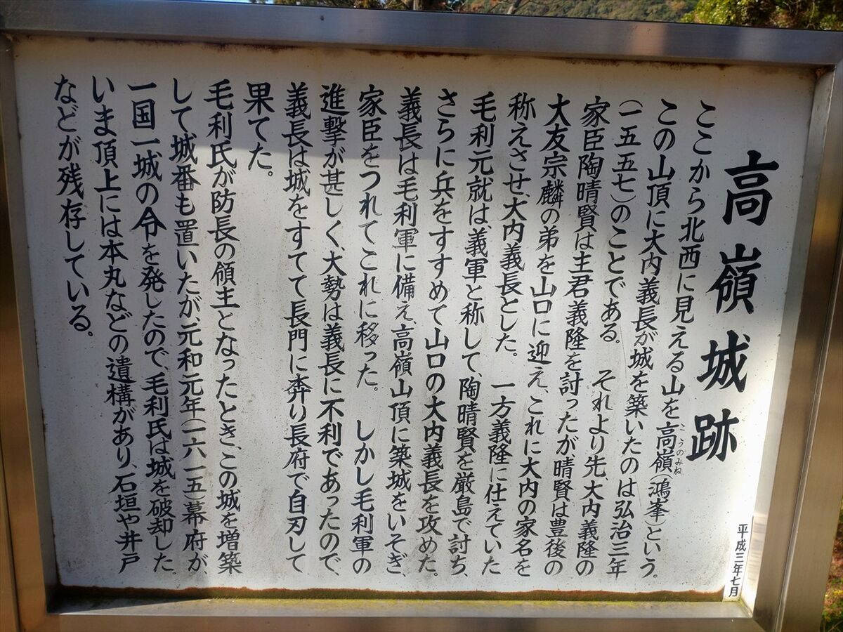 高嶺城跡の説明です。前の山でしょうか。
