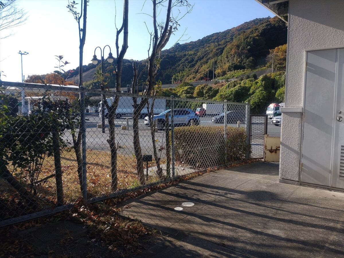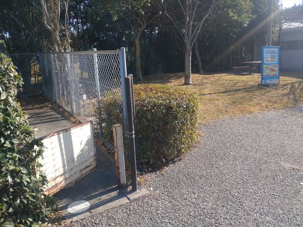 PA内には入れませんがこの写真の範囲にジオキャッシュが隠されていて一般道側からも探せます。