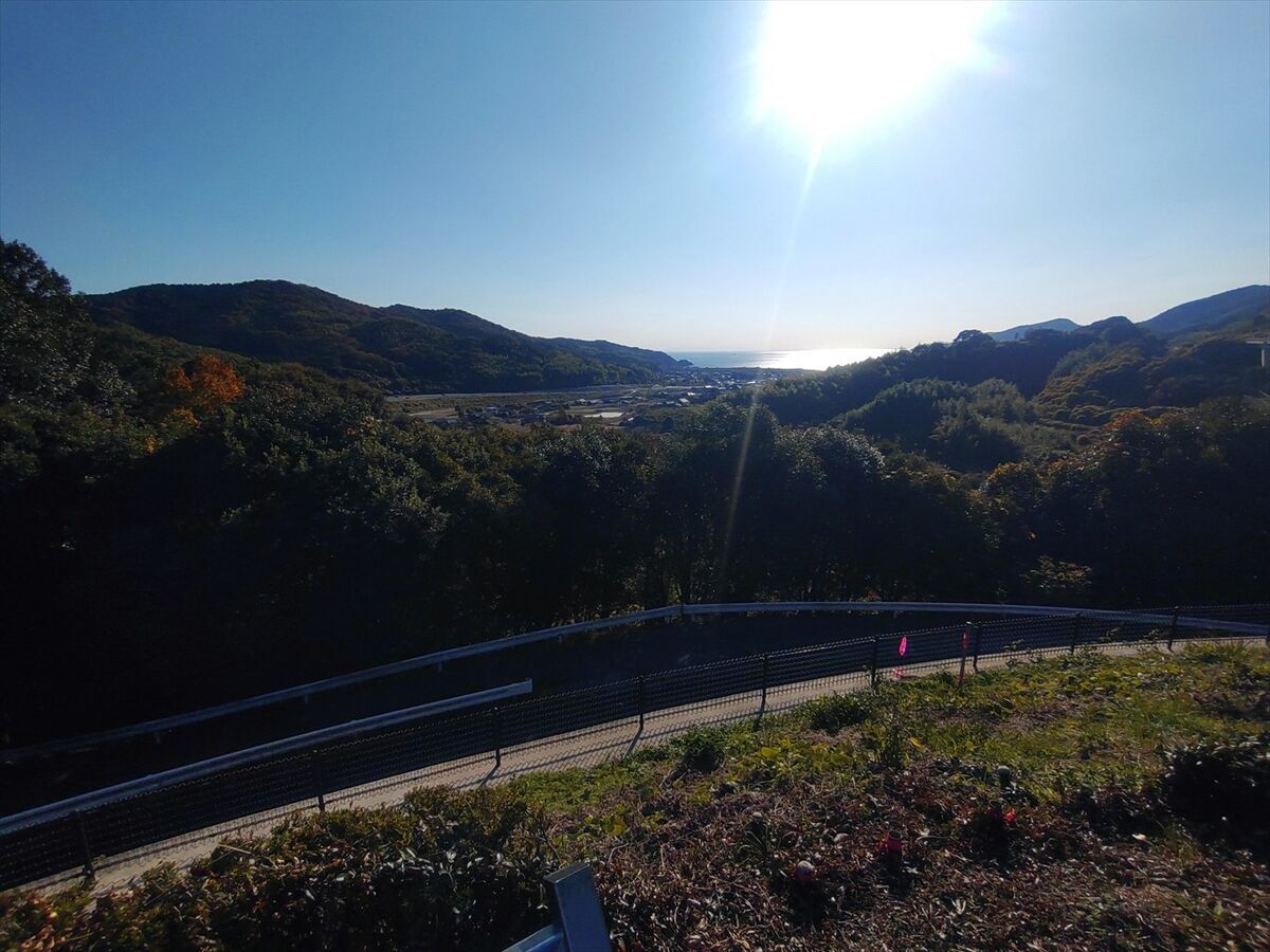 下の方に町が見える海側に行って何とかかすかな電波を拾って場所がわかりました(^^;