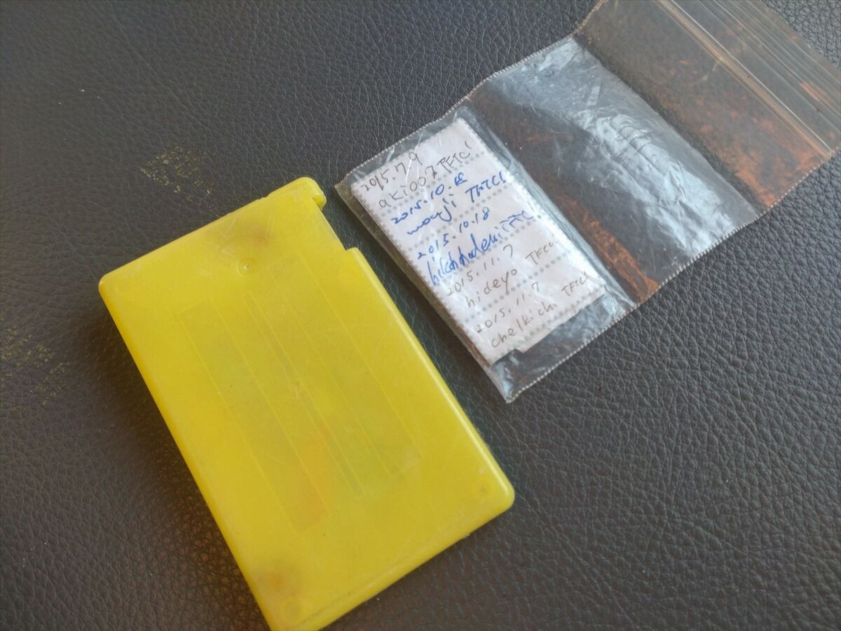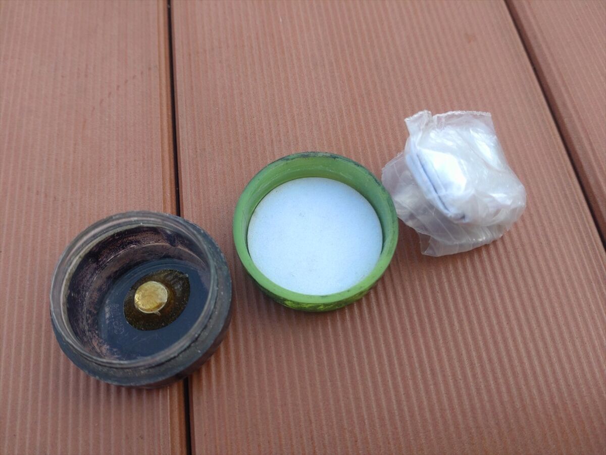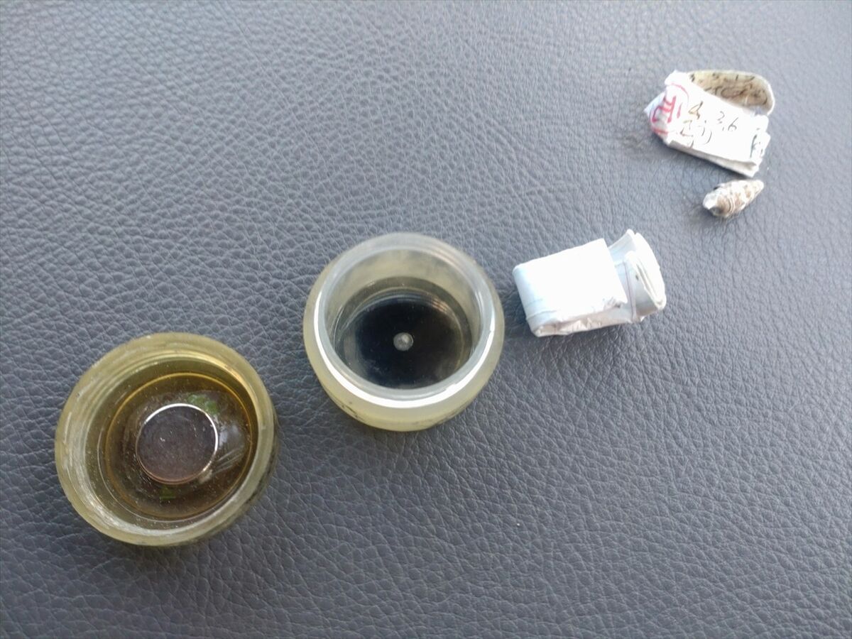 次はもう一度コンテナを開けた写真を助手席扉を開けて写していたら、みつけたばかりのフタが落ちて車の下に転がっていきました(^^;