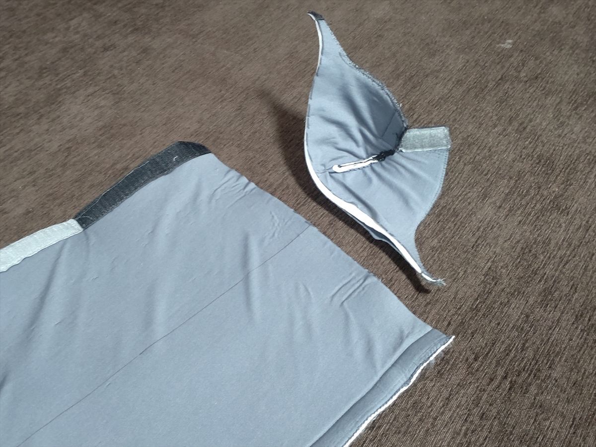 断熱カバーだけで排熱ダクトにするのは止めて、普通に樹脂ダクトにかぶせるようにミシンで縫い直して作り直しました。