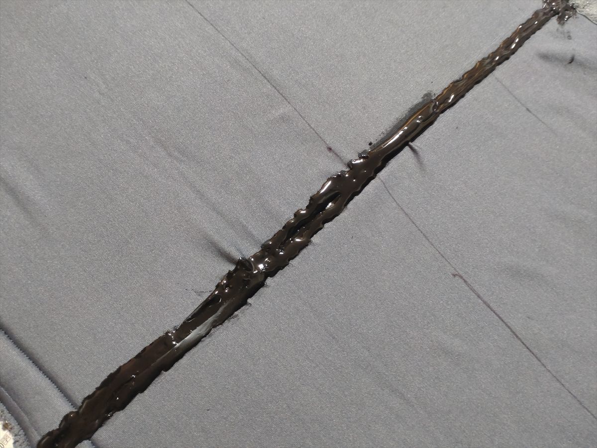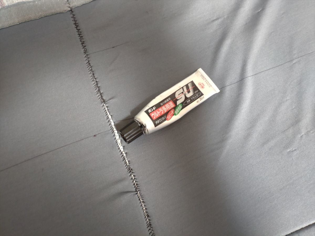 縫い合わせた所の補強を兼ねて黒色の強力接着剤をたっぷり塗りました。